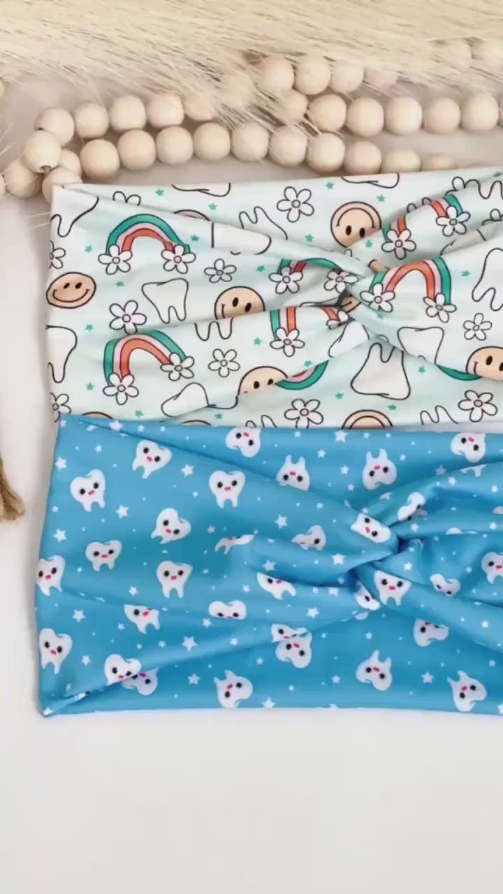 Brighten up your dental office attire with our Dental Twist headband, the perfect accessory for dental assistants and anyone in the dental field. This charming headband features a unique twist design that adds a touch of whimsy to any outfit. It's not only a stylish accessory but also a great dental hygiene gift.